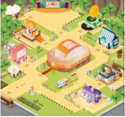 중간 층위에서 CJ Donors Camp의 각 공간은 명확한 구역 구분과 시각 정보 제시를 통해 사용자가 서로 다른 동아리의 공간 구조를 쉽게 이해하도록 돕는다. 각 동아리 공간은 색채 대비가 뚜렷하고 시각 계층이 단순하게 유지되어, 과도한 레이어 중첩으로 인한 정보 차폐 현상을 방지하였다(그림 6). 공간 내부에는 명시적인 사건 단서 메커니즘이 구축되어 있어, 사용자가 특정 과제 오브제나 구역에 접근할 때 설명 말풍선이나 이미지가 자동으로 팝업되어 현재 과제 목표를 이해하고 즉각적인 조작 피드백과 사건 설명을 제공한다. 지도 전환 기능과 공간 간 명확한 구획은 효과적인 경로 단서 시스템을 형성하였다. 이와 같은 시각적 레이아웃과 단서 메커니즘의 협력 작용은 불필요한 이미지 중복, 내비게이션 결여, 시각 차폐와 같은 전형적 외재적 부하 요인을 효과적으로 회피하였다. 이를 통해 서사 이해와 상황 맥락 형성을 위한 인지적 여유 공간을 확보하였으며, 후속의 기호 해독과 정서적 몰입을 위한 안정적 인지 여지를 제공하였다.