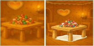 - · AR: 과자집에 카메라를 비추면, 집 안쪽에 마녀의 실루엣이 어렴풋이 나타나며 위협적인 분위기를 형성함. 따뜻한 분위기의 과자집과 알록달록하고 화려한 사탕 애니메이션이 함께 보여짐.